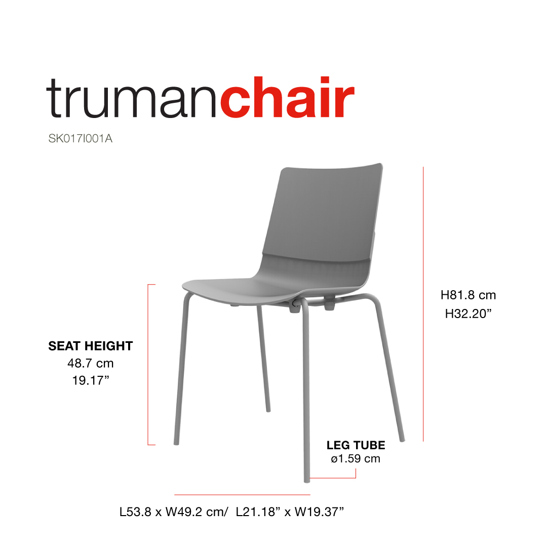 | Truman chair grau | SK017I001A-SG | 8435768209471 | 53.8x49.2x81.8 cm / 21.18x19.37x32.2" | 1 Person | 272 kg / 600 lb | 4.79 kg / 10.56 lb | Polypropylen | Herunterladen |