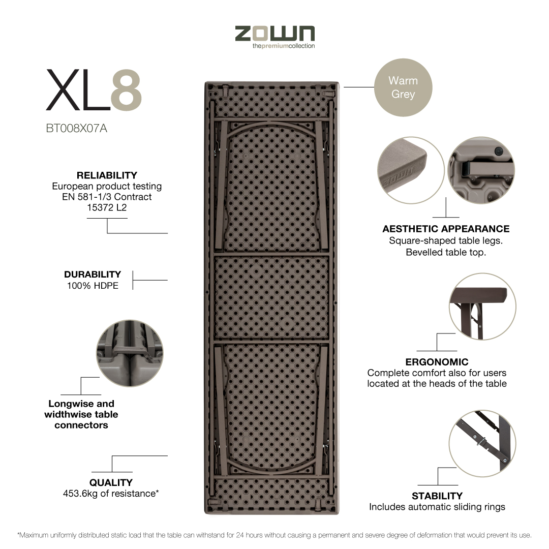 Rechteckiger Klapptisch 243 x 76 cm für bis zu 8 Personen. Idealer Tisch für informelle Feiern und große Versammlungen.